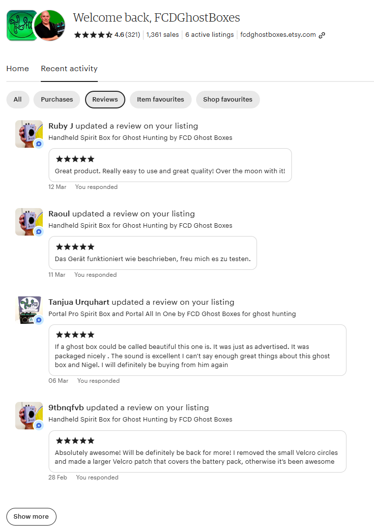 Customer Reviews from our other selling platforms
