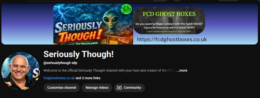 Just a heads up! It's been quite a long while coming, but I think I'm finally there! I'll be launching a new Youtube channel in the next week, called 'Seriously Though!'. As most of you know, creating and building FCD Ghost Boxes has been my main occupation for most of the past decade and it continues to be so, but I always wanted to get back, in some way, to discussing all sorts of paranormal subjects...from a pretty personal point of view.