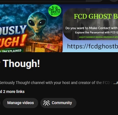 The channel will be a mix of videos, mostly LIVE, about the usual suspects, UFOs, Ghosts, Earth Energies, Portals, Conspiracies, etc., alongside the use and demonstrations of current FCD Ghost Boxes spirit boxes and portals in these live sessions.