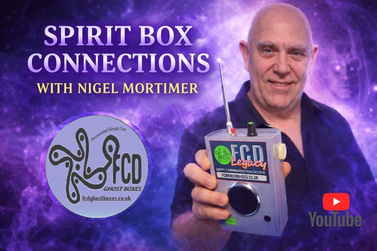 Spirit Box Connections with Nigel Mortimer is a weekly educational video show dedicated to helping viewers learn how to use FCD Ghost Boxes with greater confidence, purpose, and respect. Hosted by Nigel Mortimer, creator of FCD Ghost Boxes, the show offers classes, tutorials, demonstrations, practical guidance, and spiritual insight for those seeking to make the most of their spirit box sessions.